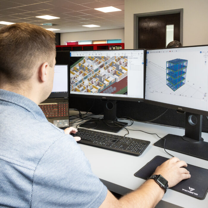 Our highly trained construction modelling and detailing team works with main contractors, manufacturers, fabricators and sub-contractors across the supply chain. With over 30 technicians, we provide expert detailing for structural steelwork, architectural metalwork, modular volumetric units and LGSF. We also specialise in creating fully coordinated ‘single source of truth’ models, developed both internally and in collaboration with external clients, to streamline your workflows and enhance coordination throughout the entire construction process.
